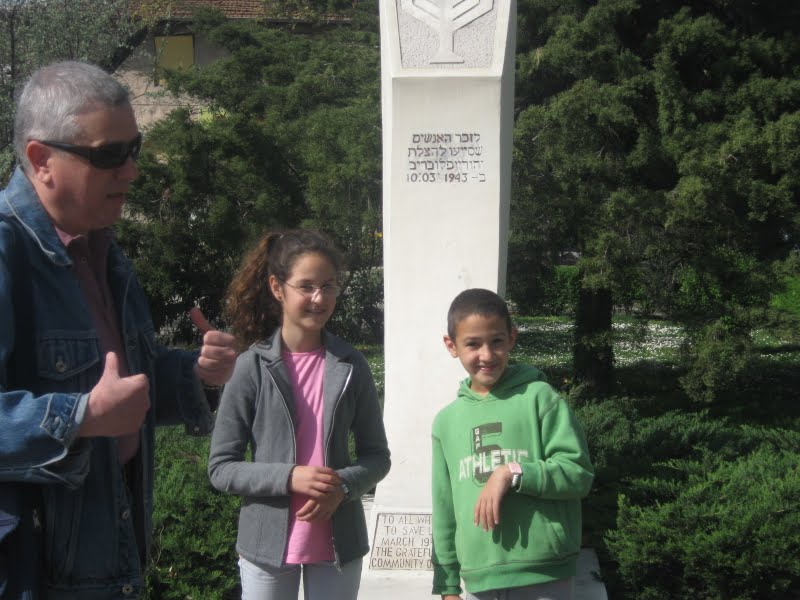 אנדרטה לזכר יהודי פלובדיב שנרצחו בשואה. משמאל: המדריך סמי
