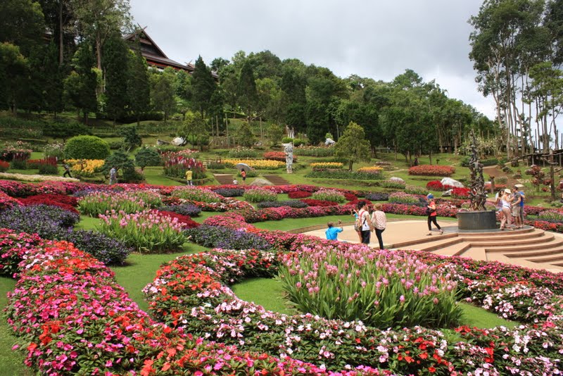 כשמיצינו את הגנים נכנסו לבקר בביתה של המלכה האם שנבנה בסמוך. טריוויה: המלכה האם מתה לפני 10 שנים. בנה הוא המלך הנוכחי, ובדיוק ביום שביקרנו בגנים אשתו חגגה יומולדת 80. בתאילנד יום הולדת של המלכה הוא מעין יום האם, כשכולם לובשים כחול (שזה הצבע של המלכה, כי היא נולדה ביום שישי ויום שישי בתאילנד הוא היום של הצבע הכחול) והולכים להיות עם אמא. המלכה האם החליטה לגור בצ'אנג ראי (ולא בבנגקוק) כי זה היה איזור עני ומוכה סמים, והיא החליטה לעבור לשם כדוגמא אישית ועל מנת לעזור לפתח את האיזור – משהו כמו בן גוריון אצלנו. כך יצא שהגנים המטופחים שלה הוקמו כדי שלתושבים המקומיים תהיה תעסוקה ופרנסה במקום לגדל אופיום. הבית עצמו עשוי כולו מעץ ואפשר לראות שם את החדר שלה, המקלחת שלה וכו…