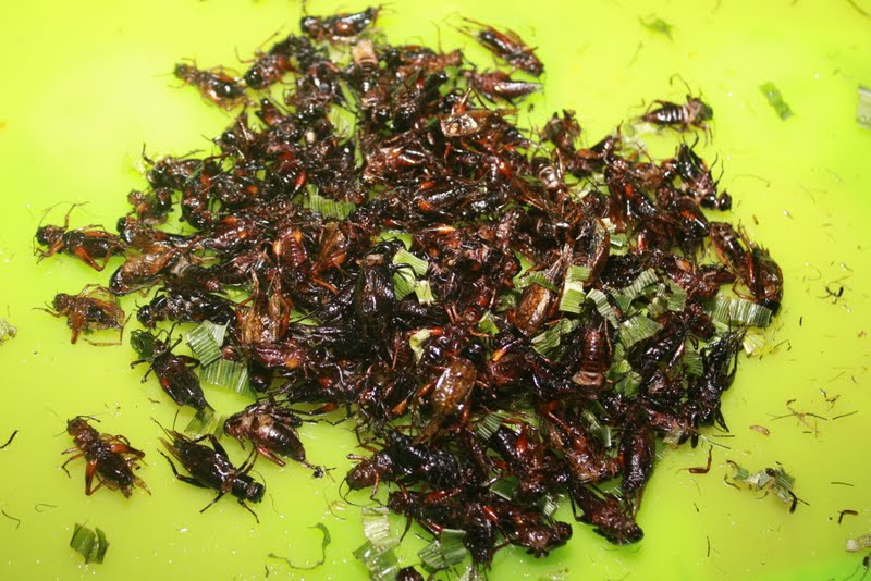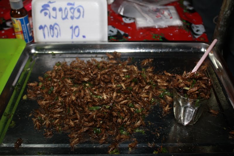 בערב יצאנו לשוק לילה של יום ראשון. ראינו שם מאכלים כמו בהישרדות – חרקים, ג'וקים וכאלה, כולל כלוב צרצרים חיים, שכשמישהו מבקש מנה המוכר מוציא כמה עם מסננת וזורק אותם לשמן הרותח. כן, האוכל מאוד טרי שם. הנה, ככה זה נראה, שתיגעלו גם אתם: