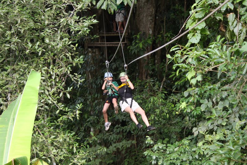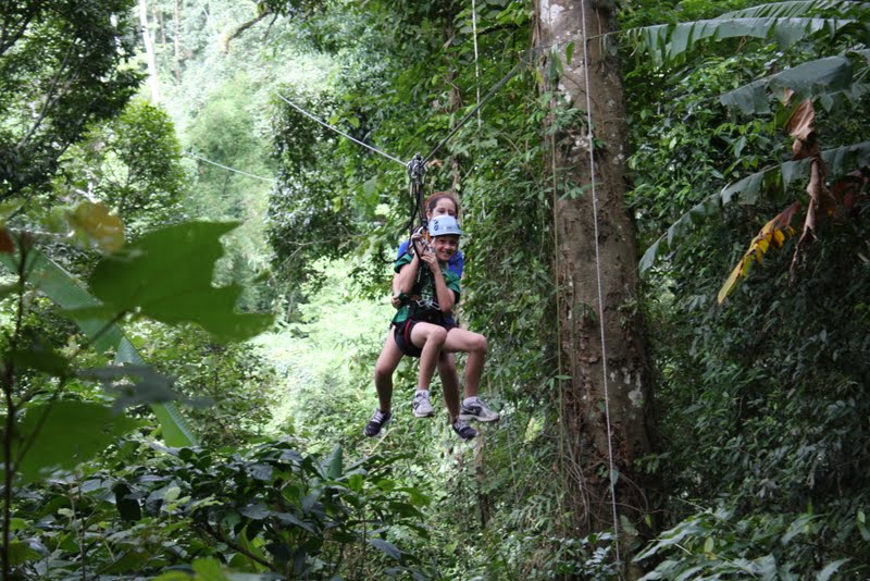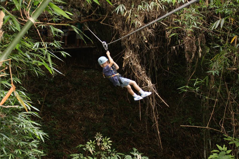 פארק האומגות נמצא בראש הר גבוה מאוד, כשעוברים מעץ לעץ בעזרת אומגה באורכים שונים, בגשרי חבלים או בסנפלינג. התוצאה היא שלאורך המסלול רואים נוף מקסים של ג'ונגל וקצת את האיזור מסביב. אנחנו לקחנו מסלול של 16 אומגות שבו האומגה הארוכה ביותר היא באורך 800 מטר (יש גם מסלולים עם 20 ומשהו אומגות) והמסלול כולו נמשך כשעתיים וחצי עד שלוש שעות. כשתיכננו ללכת לשם חשבנו שאולי גיא יהיה קטן מדי בשביל זה ויפחד, ואמרנו ולעצמנו שמקסימום הוא יעשה את האומגות עם מדריך צמוד.