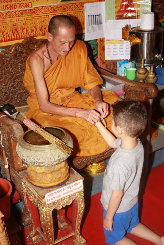 בחדר אחר יושבים הנזירים וקושרים צמידים לבנים למזל. מאחר שאסור להם לגעת בבנות, יש לידם "עוזר נזיר" שקושר את הצמידים לנשים. לפני קשירת הצמיד צריך לשבת לפני הנזיר והוא מתיז מים לברכה. זה היה מאוד מצחיק והתקשנו להתאפק מלצחוק.