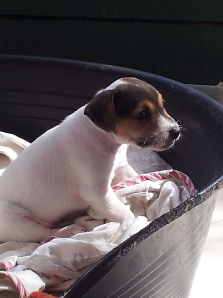 עוד שבוע עבר, ויום אחד אני מגלה במייל לינק שאלון שלח לי תמונות של גורי ג'ק ראסל, כאלה מתוקים עם כתם על העין. אפילו לב אבן כמוני נמס. "איזה חמודים הם", עניתי לו. "איך זה עושה חשק, אולי בכל זאת?". אחרי הכל, הרי שמרנו את הכלים לאוכל ולמים של אוליבר (שקנינו בהביטאט (!) דפוקים שכמונו), וחבל שהם סתם מעלים אבק במחסן.