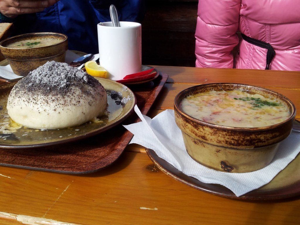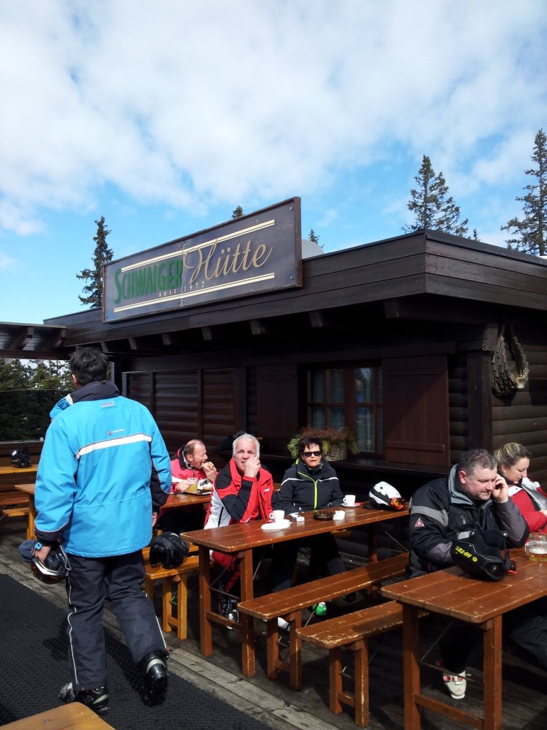 בצהריים עצרנו במסעדה על אחד המדרונות, משהו אותנטי מעץ כזה עם מרפסת שצופה להר. אכלנו מרק ציידים, שעשוי מכל מיני נקניקים ופטריות ומגיע עם לחם, וגם גרמקנודל (ע"ע), שוקו ובירה. העצירות האלה באמצע היום ממש כיפיות. בהתחשב בכמה שאני חלודה וכמה מהר התעייפתי, זה היה ממש כמו אוויר לנשימה.