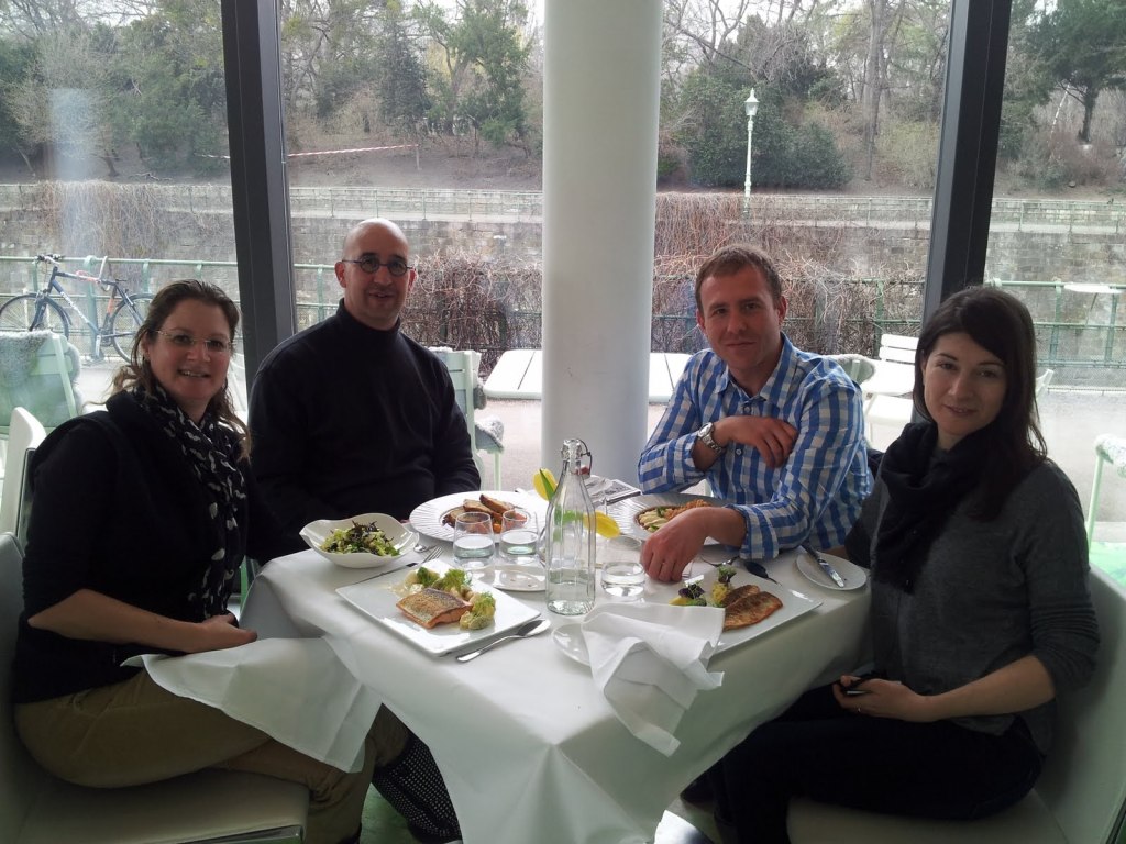 צהריים עם עדי: כשעדי הציעה שניפגש בווינה חשבתי שהיא צוחקת, אבל כמו גדולה היא שכנעה את פיטר לקחת יום חופש ולנסוע ליום כיף. נפגשנו לצהריים במסעדה בשם meirei, שבמקרה לגמרי נמצאת בלב הפארק שמול המלון שלנו. עדי ופיטר הגיעו במיוחד מבודפשט והיה משהו מרגש למדי בזה ששתי בחורות משתי מדינות שונות קובעות להיפגש ביום ובשעה מסוימים במסעדה שנמצאת במדינה שלישית. באופן מדהים, כולנו הגענו למקום הנכון בזמן הנכון.
