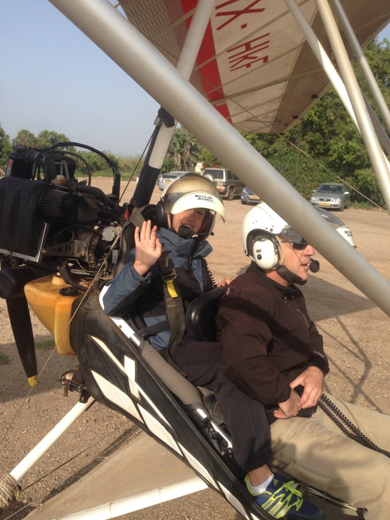 איתמר חבש את הקסדה, למד איך הכלי פועל ואיך מדברים באמצעות מערכת הקשר – והמריא. אחרי שהם עשו סיבוב מעלינו הם טסו מעל גוש תל מונד, ראו את הים, את מגרש הגולף בקיסריה ואיתמר התלהב במיוחד מבית הספר הבינלאומי באבן יהודה, וכמובן הודיע שהוא רוצה ללמוד שם (עניין פעוט של מאה אלף שקל בשנה או משהו כזה).