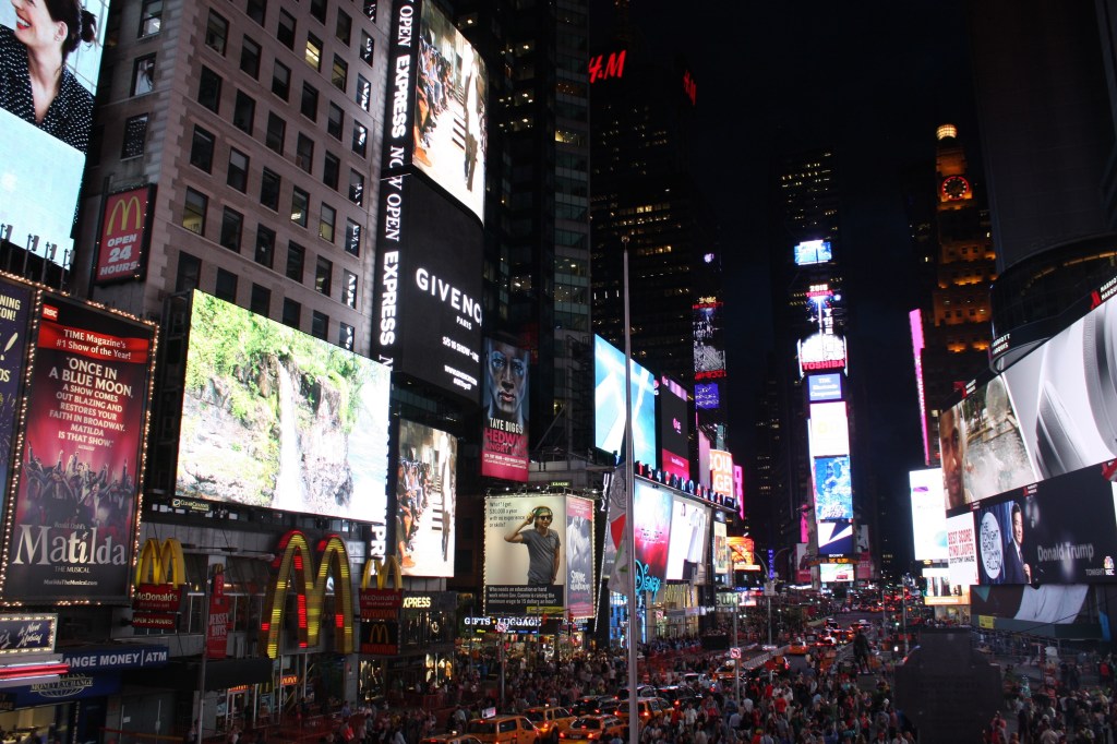 בשלב הזה היינו כבר ממש שפוכים אז חתכנו למלן להתקלח ולנוח. בערב הלכנו ברגל ל-Times square, ובכניסה לחנות M&M גיא פגש לגמרי במקרה חבר מהכיתה ושמח מאוד מאוד. אחרי שישבנו קצת על המדרגות המפורסמות נכנסנו גם לחנות של דיסני ושל טויס אר אס, ובסוף בסוף הלכנו לאכול. גיא, שכבר היה הרוג לגמרי מהטיסה ומהיום הארוך, נרדם ליד השולחן ועשה את כל הדרך מהמסעדה למונית ומהמונית לחדר כשהוא הולך מתוך שינה וממלמל מילים כמו "איתמר, אבל למה, למה". ממש ריחמתי עליו.