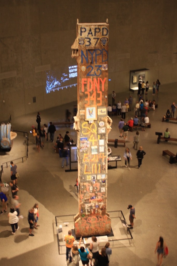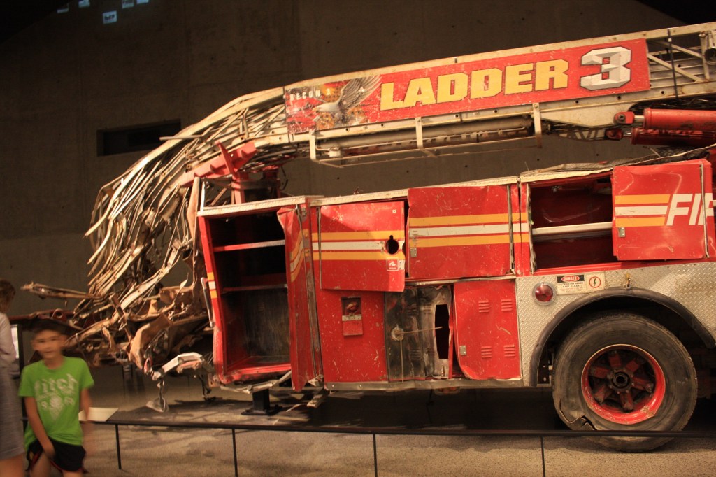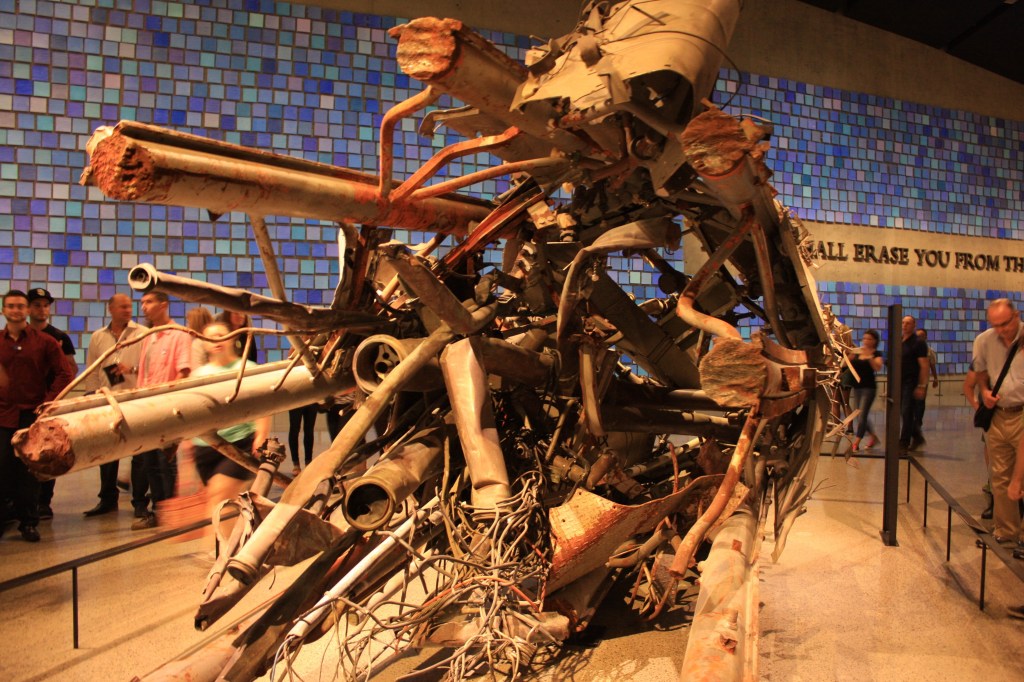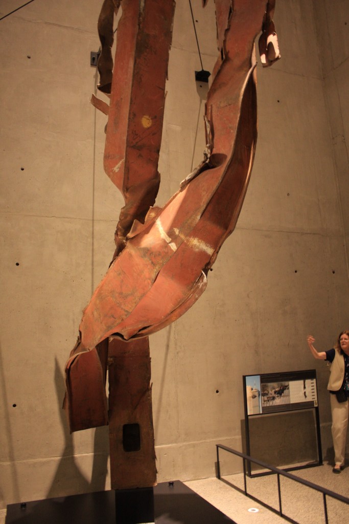 הייחוד של המוזיאון, לדעתי, הוא בכך שהוא נותן פרספקטיבה פיזית שעוזרת להבין את גודל האסון. כלומר, לראות את הבניינים קורסים בטלוויזיה זה לא כמו לראות בעיניים עמוד מתכת אדיר וכבד שהיה חלק מהבניין והתקמט כמו ספגטי, או חלק מהאנטנה הענקית שהייתה על גג הבניין ונפלה כל הדרך למטה. החלק המיותר במוזיאון הוא זה שמספר את ההיסטוריה של הקמת המגדלים ושל ארגון אל-קאעידה, אז עליו דילגנו די מהר. מה שהיה לי קצת חסר זה דווקא עוד עדויות של ניצולים, ואולי בגלל זה המשפחות הקימו מעבר לכביש את ה-Tribute center, שהוא מעין מוזיאון מתחרה שמספר את הסיפור מנקודת המבט של אלה ששרדו (לא ביקרנו בו).