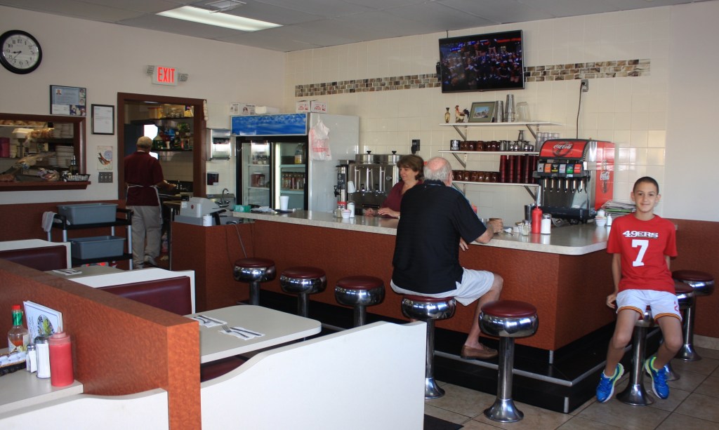 אז יצאנו לדרך לפני 7, וב-8:30 כבר עצרנו לארוחת בוקר בדיינר אמריקאי טיפוסי בפרבר של פילדלפיה. זה היה דיינר ממש כמו בסרטים כולל הדיל המלא של ארוחת הבוקר: ביצים, בייקון, נקניקיה, תפוחי אדמה מטוגנים, טוסטים, פנקייקים וכמובן הקפה המגעיל. האוכל דווקא היה מצוין וכולנו הרגשנו כמו בסרט.