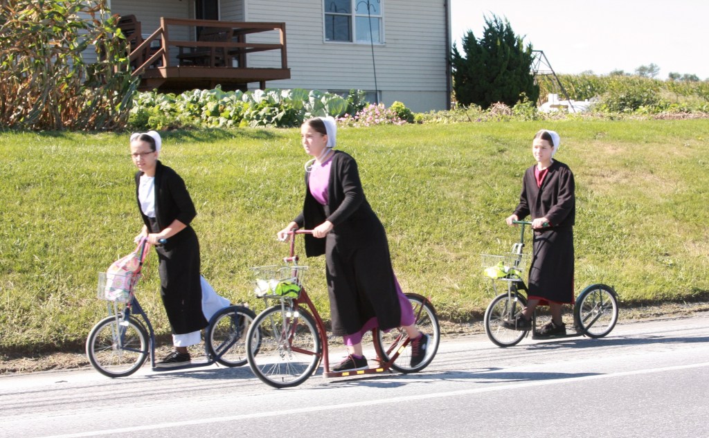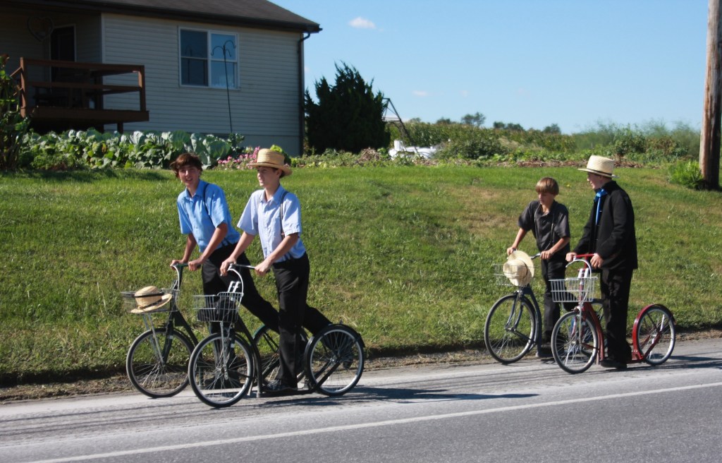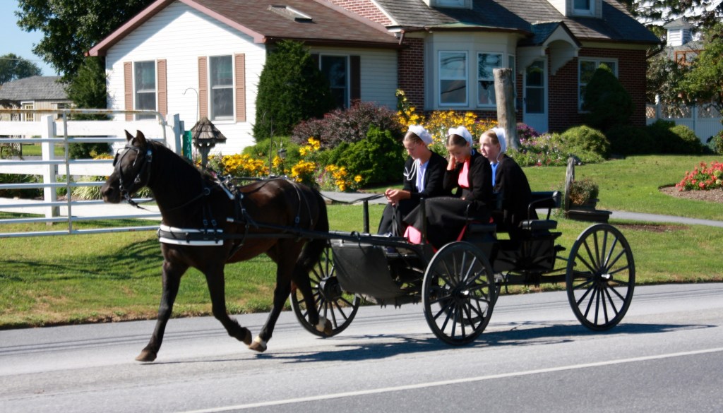 משם המשכנו לארץ האיימיש במחוז Lancaster, איזור ירוק מאוד, מלא שדות תירס ומנוקד בחוות מקסימות עם פרות וסוסים שבהן חיים ועובדים בני כת האיימיש. לא התכוונו לקחת את הסיור התיירותי, בעיקר בגלל בעית אוטנטיות קשה, אבל חשבנו שיהיה נחמד להסתובב בין הכפרים ולראות אם יהיה לנו מזל לראות אותם ואת הבתים שלהם. והיה. בכפרים Bird in Hand ו-Intercourse (כן, יש כפר כזה. אבל בגלל שמיליוני תיירים מתלהבים עצרו בכניסה לכפר להצטלם עם השלט, הם פשוט הורידו אותו) ראינו הרבה איימישים בתלבושת המסורתית נוסעים בכרכרות רתומות לסוסים. מאחר ששמענו שהם לא אוהבים להצטלם, השתדלנו לצלם אותם בלי שישימו לב.