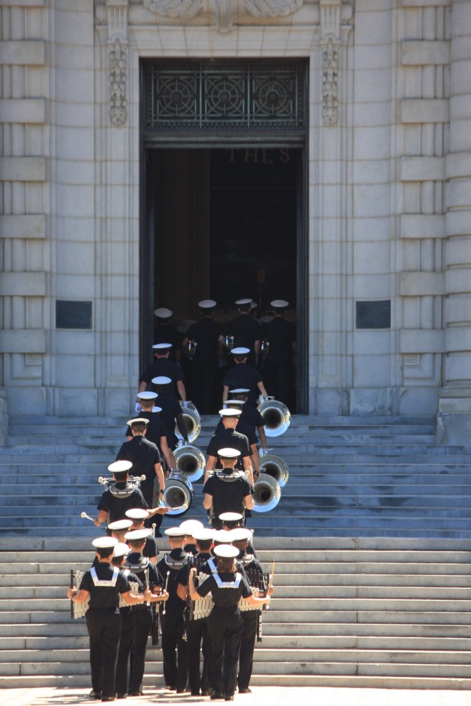 אנאפוליס מפורסמת (חוץ מבשיחות השלום שהתקיימו בה) גם באקדמיה הימית שממוקמת בה ומכשירה קצינים לצי האמריקאי. האקדמיה פתוחה למבקרים אז נכנסו ודי נשמטה לנו הלסת. איזה מקום מהממם. מושקע, מטופח, עשיר, יפה, מכובד. הסתובבנו בין הבניינים, הטיילת ומגרשי הפוטבול (אחד פתוח ואחד מקורה), אמרנו שלום לכל חייל חתיך במדים שעבר על פנינו ולא התאפקנו מלהשוות לאוניברסיטת תל-אביב. ב-12:00 בדיוק הגענו לצפות במסדר שנערך שם מדי יום: