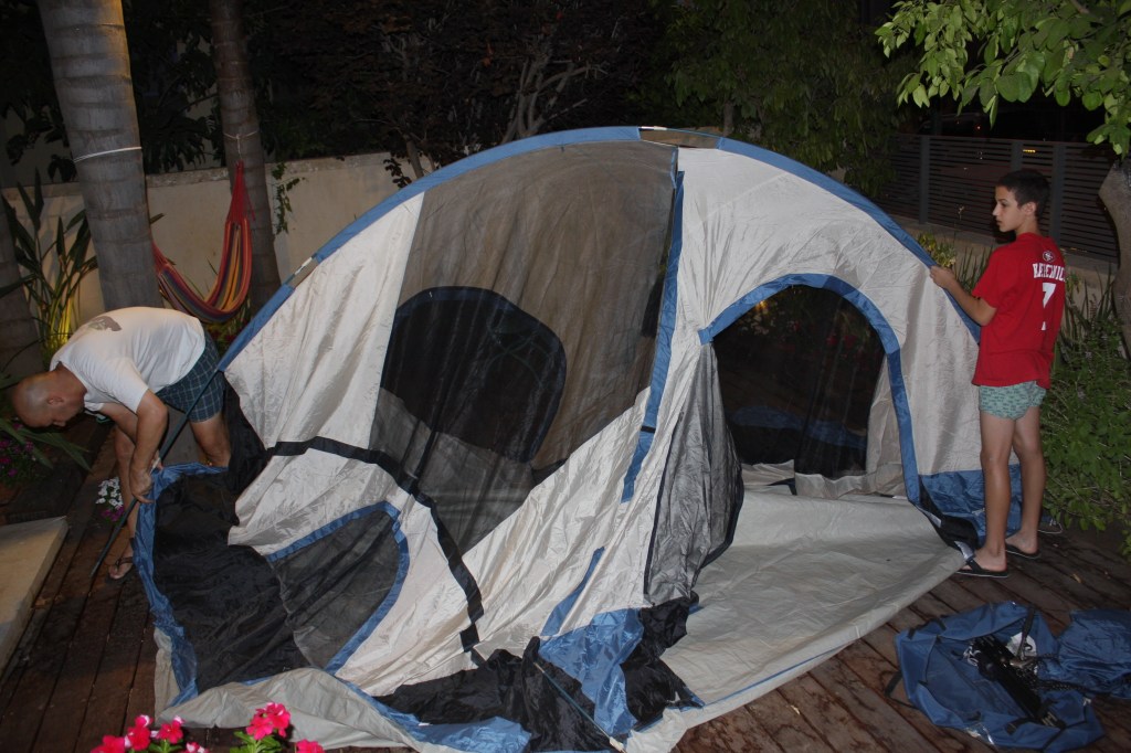 עוד במסגרת החודש איתמר למד כמה מלאכות "גבריות" כמו לבנות אוהל ולהחליף מנורה. למרבה האירוניה, את המנורה אני לימדתי אותו להחליף… בניית האוהל, לעומת זאת, הפכה לאירוע חברתי משמח, כשאלון ואיתמר בנו אותו בחצר שלנו ואז איתמר הזמין חברים לישון בו בלילה. מי שמכיר את האוהל העצום שלנו יודע כמה קשה לבנות אותו (כן, זה לא מסוג האוהלים שעושים פווו והם נפתחים. איכשהו שום דבר אצלנו הוא לא מהסוג הקל והנוח) – ועדיין איתמר השתלט על המשימה. לא בטוח, עם זאת, שבפעם הבאה הוא יצליח לעשות את זה לבד.