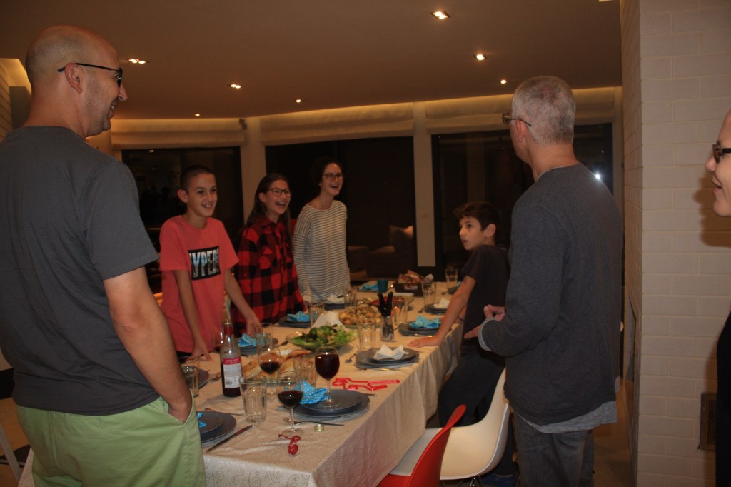 מה עוד היה לנו? בשנת הבת מצווה של שחר הלכתי איתה לעשות שבת אצל חן ואוהד. הפעם החלטנו להתמקד בקבלת שבת כהלכתה. אז הזמנו את משפחת אמזלג לעשות איתנו שבת, וביקשנו מדודו, דתל"ש ואיש אשכולות, לספר לאיתמר קצת על יהדות בכלל ועל בר מצווה במגזר בפרט. דודו הגיע מצויד היטב בספרי תלמוד ומשנה, והדריך אותנו בנבכי הקידוש וברכת החלה. אחר כך, בין מנה למנה, הסביר קצת לאיתמר על סדרי המשנה, פרקי אבות ושאר מרעין בישין. היה חגיגי ונעים.
