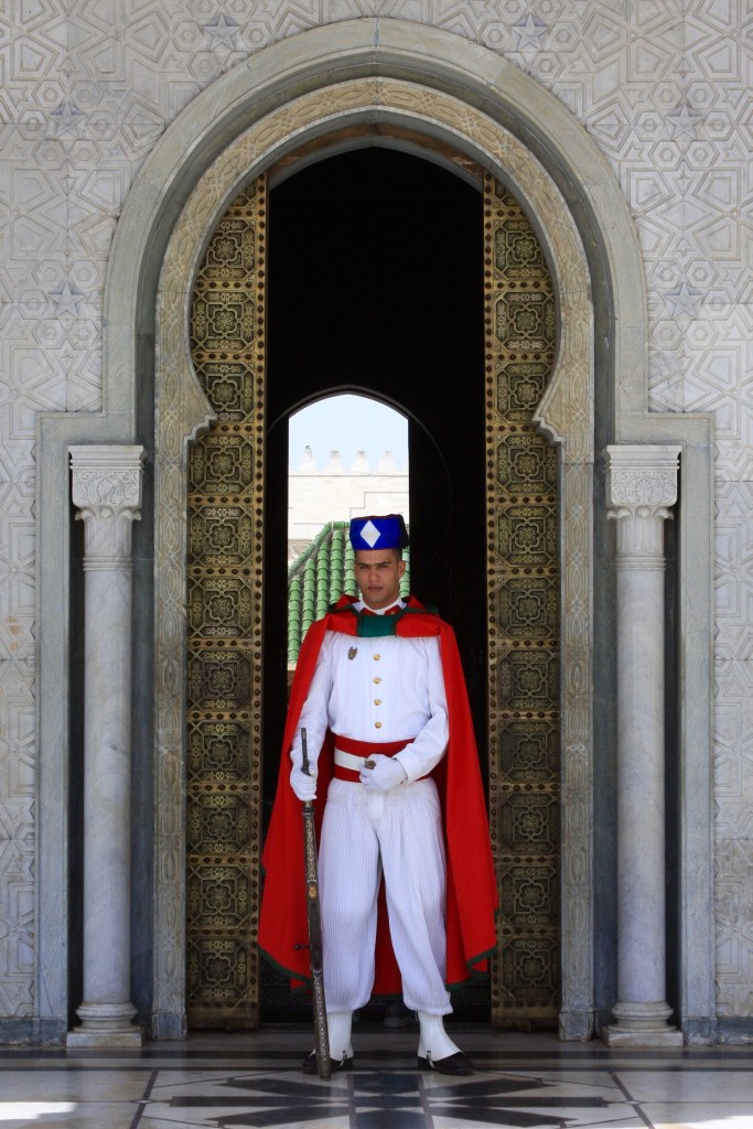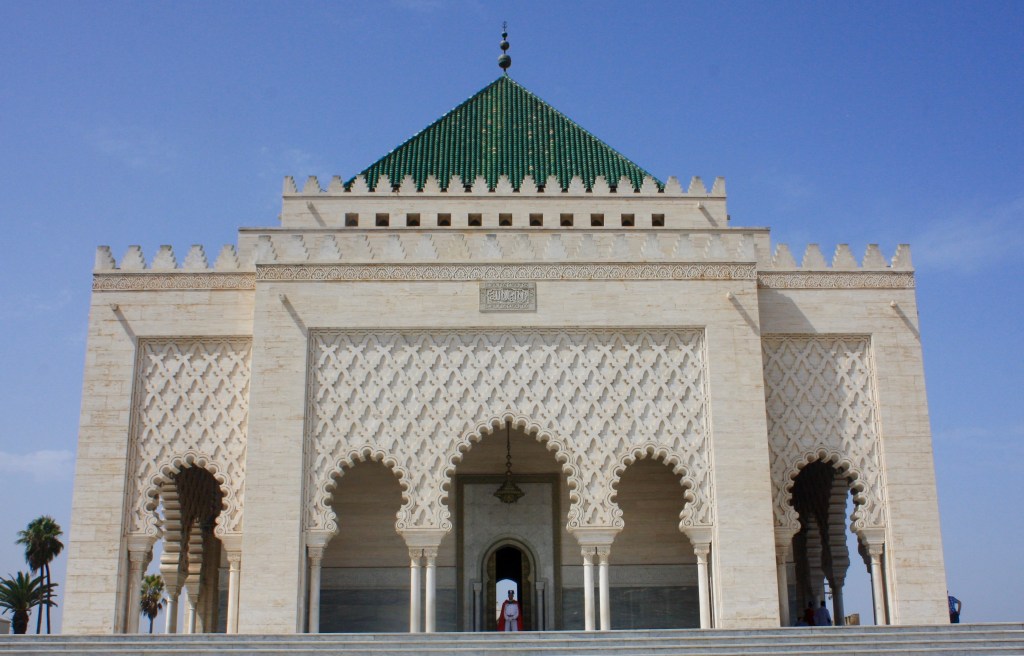 ברבאט יש נוסף לכל אלה גם את ארמון המלך ואת משרדי הממשלה, ולכן בגדול היא הרבה יותר מטופחת, נקייה ומסודרת. הארמון עצום בגודלו ואי אפשר להיכנס אליו. מבחוץ זה נראה שחצי מתושבי העיר עובדים בו: אחד מנקה את המדרגות, שישה שומרים בכניסה, מיליון גננים וכו'. אגב, בטח לא ידעתם שבמרוקו שולטים תמיד המלכים חסן ומוחמד לסירוגין (עכשיו שולט שם מוחמד השישי, הבן של חסן השני. השליט הבא יהיה בנו, חסן השלישי שהוא היום בן 12, ואחריו ימלוך בנו שעוד לא נולד אבל כבר יודעים שיקראו לו מוחמד השביעי). אחרי מתחם הארמון סיירנו במוזוליאום לזכר המלך מוחמד החמישי ובנו חסן השני ובקסבה של רבאט: