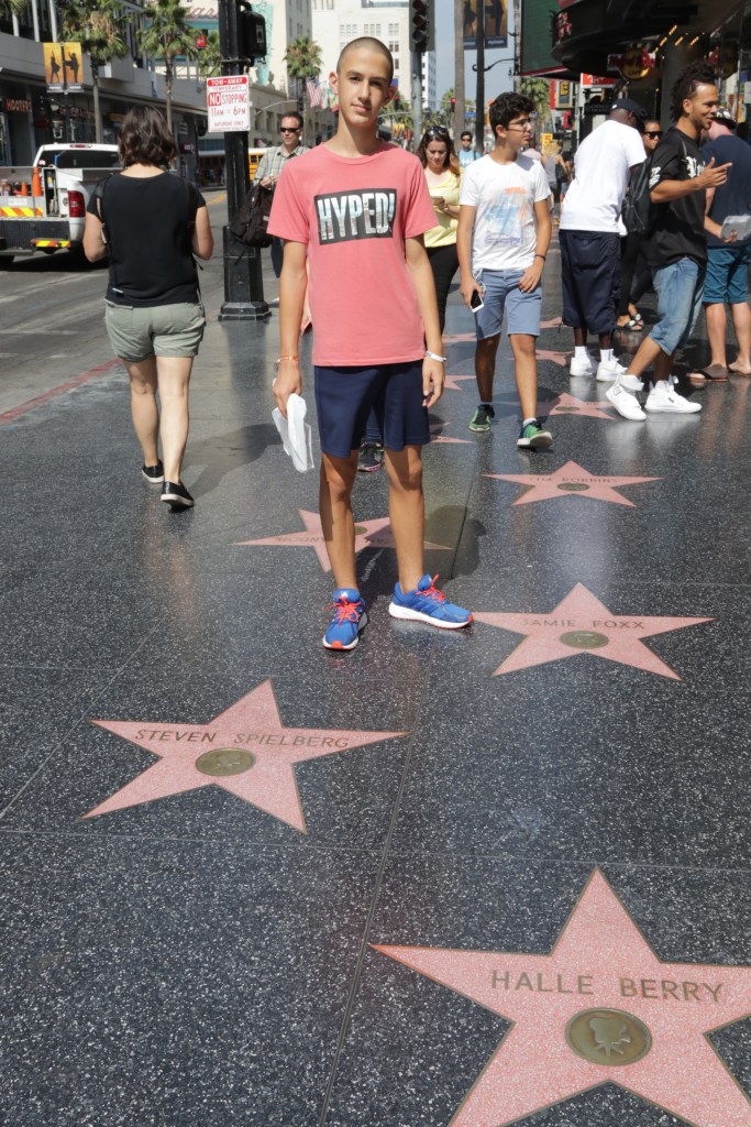 אחרי 14.5 שעות טיסה, בלי ביזנס ובלי מסאז', נחתנו בLAX. לקחנו את האוטו ונסענו לשדרות הוליווד, לראות את הכוכבים על הרצפה. כמה דברים מעניינים שלמדתי שם: 1. משום מה יש שחקנים שיש להם גם שניים או שלושה כוכבים, למשל בוב הופ או בטי דיוויס, כאילו שאין מספיק כוכבים כדי למלא את הרצפה. 2. יש די הרבה כוכבים ריקים שעדיין מחכים לשחקן שיתפוס אותם. 3. הכוכב של דונלד טראמפ עבר התעללות 4. הכוכבים של טים רובינס סוזן סרנדון עדיין צמודים זה לזה למרות שהם כבר לא 5. הכוכב שנראה הכי חדש הוא זה של דניאל הרדקליף מהארי פוטר, שלמרות שהוא צעיר קיבל מקום מצוין ממש ממול לתיאטרון שבו נערך טקס האוסקר.