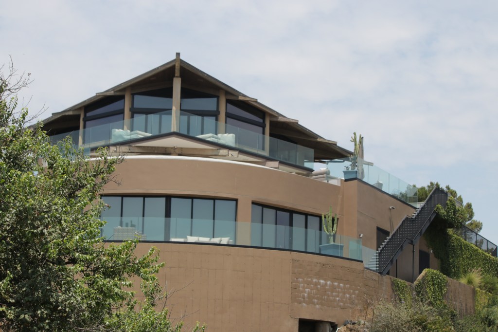 לא נעים להודות, אבל ירדנו מהאוטו כמו אחרוני הסטוקרים כדי להציץ (כאמור, לא רואים כלום). אחד העובדים שבמקרה היה בכניסה סיפר לנו שהבעלים הוא איזה יצרן של תיקי עור בשם ברוס מקאוסקי (כן, מתברר שאפשר להתעשר גם בלי שאף אחד ישמע עליך). הוא סיפר שלמרות המחיר הגבוה בכל יום יש לפחות חמישה אנשים שבאים לראות את הבית, ואני מניחה שהוא לא התכוון לרמאים שרק רוצים להיכנס ולהציץ. הוא הוסיף גם שבעל הבית תכף מגיע אז כדאי שנתחפף…