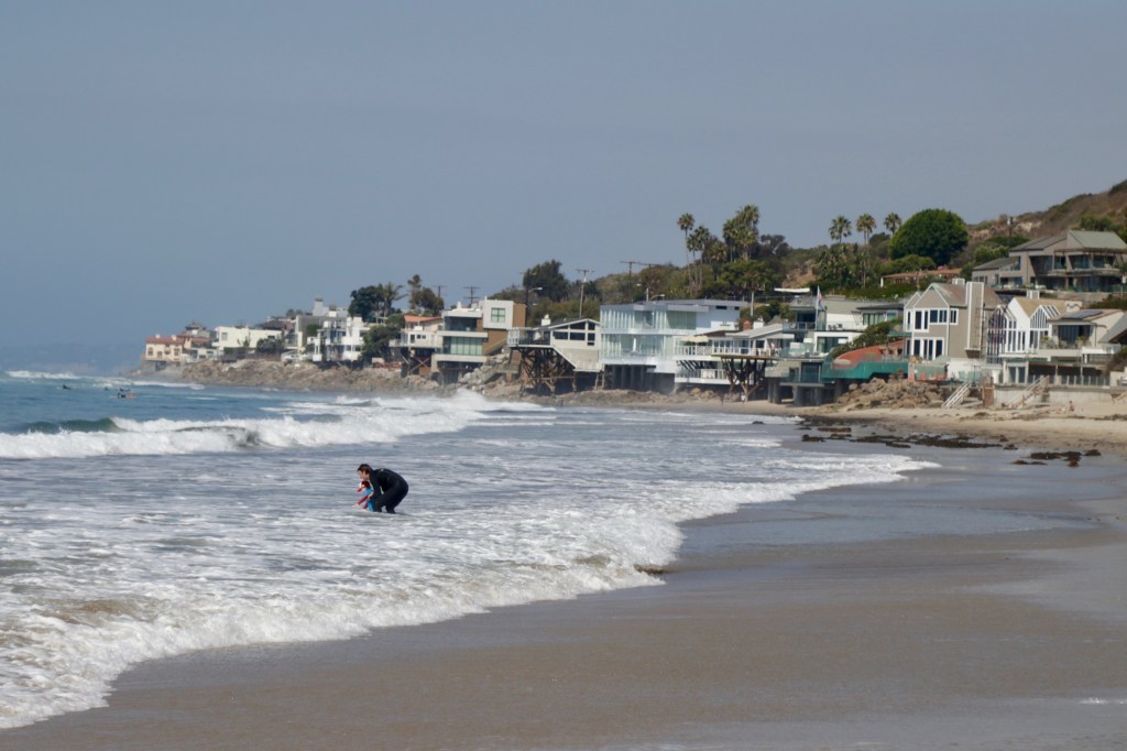 קצת אחרי סנטה מוניקה הגענו למאליבו, ושוב עשינו את מנהג הסטוקרים וירדנו לחוף להסתכל על הבתים של המפורסמים. מתברר שעל פי החוק בקליפורניה, מי שיש לו בית על החוף בקו הראשון של הים הוא הבעלים גם של רצועת החוף שלפני הבית. אמה מה? הוא לא יכול להיות הבעלים של הים ששייך לכלל הציבור, מה שאומר שכולם יכולים לצעוד לאורך החוף על קו המים, אבל לא להתקרב לבית כי אז הם ייחשבו למשיגי גבול.