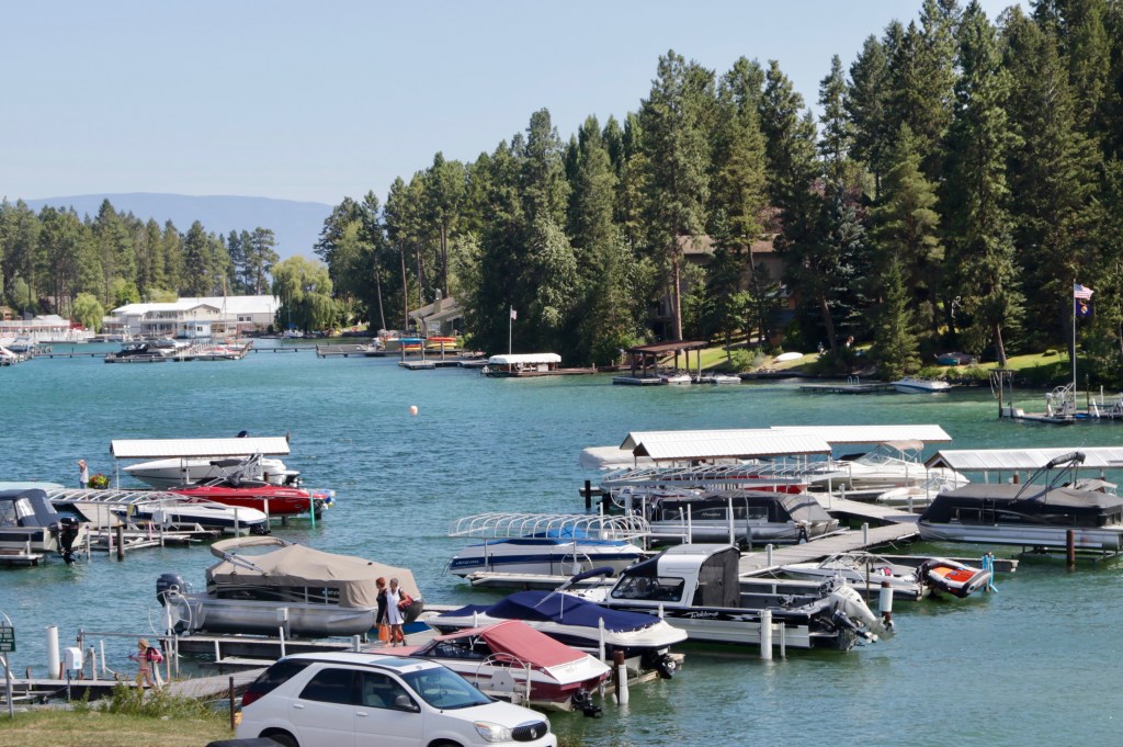 אחרי הרחצה באגם הייתה לנו עוד איזה חצי שעה נסיעה למלון שהזמנו ב-Kalispell, שהיא העיר הגדולה שנמצאת בכניסה הדרם מערבית ל-Glacier NP. אז נסענו לאט, התפעלנו מהנוף ומדי פעם התקרבנו לשפת האגם להביט בבתים היפים של מי שגר שם: