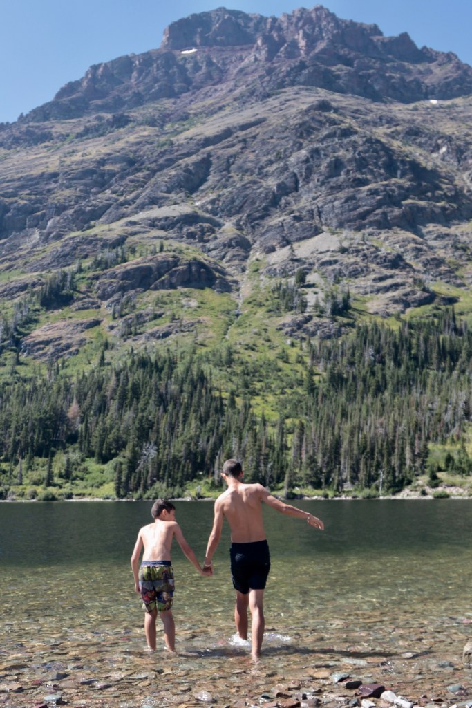 אז אחרי לילה ב-Kalispell קמנו מוקדם כדי להגיע פארק. יולי אוגוסט הם החודשים העמוסים ביותר בפארק וההמלצה היא להגיע מוקדם. הכניסה עולה 30 דולר לרכב והפס תקף לשבוע, כך שאפשר לצאת ולהיכנס מאיזו כניסה שרוצים. מאחר שידענו שאין הרבה מקומות לעצור ולאכול בפארק, וגם לא רצינו להיות מוגבלים, הצטיידנו מבעוד מועד בסנדביצ‘ים ובסופגניות מ Krispy Kremes – (אלון והילדים התייצבו בשש בבוקר בסניף שנמצא בדיוק מול המלון). ספוילר: זה היה האוכל הכי טוב שאכלנו ביומיים הבאים.