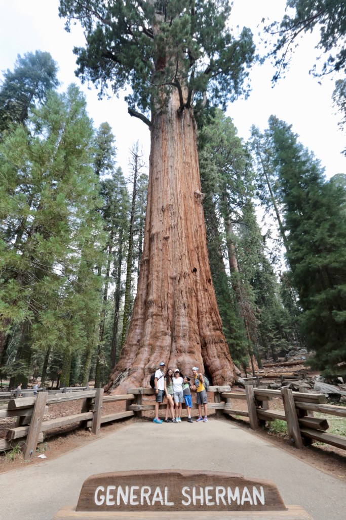 התחנה הראשונה שלנו הייתה ה-General Sherman tree, הנחשב לעץ הכי גדול בעולם. הוא הכי גדול בהיקף (33 מטר בערך) אבל לא בגיל ולא בגובה: הגיל של הגנרל שרמן מוערך בכ-2,000 שנה, בעוד שהעץ הכי זקן בעולם הוא בן יותר מ-3,000 שנה. הגובה של הגנרל שרמן הוא כמאה מטר, אבל בשנים האחרונות הצמרת שלו מתה והוא הפסיק לגבוה (אם כי הוא עדיין ממשיך להתרחב).