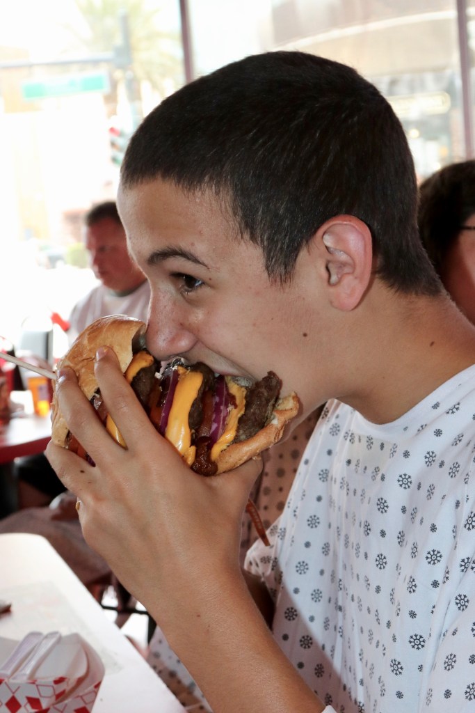 התפריט כולל המבורגרים – מקציצה אחת ועד שמונה, שנקראות פה "מעקפים" – עם גבינה, בייקון וכל דבר שמן אחר שאפשר לדמיין. בכניסה יש משקל ומי ששוקל יותר מ-350 פאונד (כ-150 קילו) אוכל בחינם. והכי הזוי – מי שלא גומר את האוכל מפליקים לו בתחת (לזכותם ייאמר שהם עושים את זה רק אם אתה רוצה).