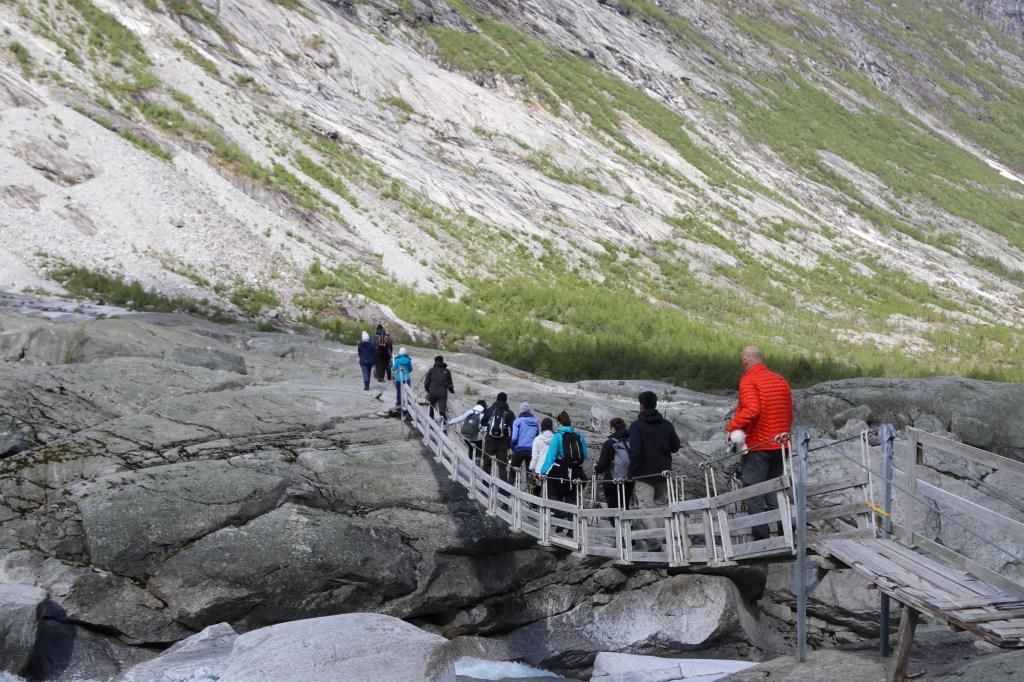 למחרת קבענו טרק על קרחון Nigardsbreen בשמורת Jostedalsbreen. התכוונו לנסוע בדרך נופית ובדרך לשם עצרנו בתצפית המהממת הזאת, שהיא למעשה מרפסת שמשתרעת מעל הפיורד: