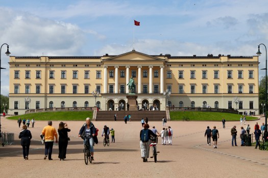 משם המשכנו לרחוב הראשי, Karl Johan, עם כל החנויות והמותגים (לא קנינו כלום, אבל ציינו לעצמנו שהגברים הנורבגים מתלבשים ממש יפה). הרחוב הזה מוביל לארמון המלך, ששם מדי יום ב-13:30 יש חילופי משמרות. איך להגיד את זה בעדינות, טקס חילופי משמרות כל כך איטי, משעמם, מרושל ומחופף לא ראיתי בשום ארמון בחיים שלי.