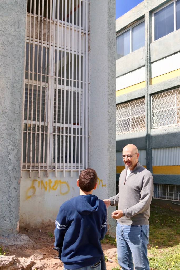 אלון גדל בשכונת רמת יוסף בבת-ים (כשאמרתי לגיא בטעות שניסע לחולון אלון אשכרה נעלב. מי ישמע, פוטטוס פוטאטוס). ביקרנו בבית שבו הוא גדל, בגן שלו, בבית הספר היסודי ואפילו בבית הכנסת. הסתובבנו בשכונה ואלון היה נרגש מאוד ושופע סיפורים. הוא הדגים איך שלחו אותו לזרוק את שקית הזבל והיא התגלגלה לו מכל המדרגות ישר לסלון של השכנה מלמטה, נזכר איך הרב של בית הכנסת הבטיח לירה שלמה למי שיבוא להתפלל שלוש פעמים בשבוע, סיפר איך הוא שיחק בחצר בית הספר בדיוק כשהמנקה שפכה מהחלון דלי מים ישר על הראש שלו ואיך הוא שבר לשפרה את השיניים כשקפץ עליה מאחור, והראה לנו איך הנחו אותם בכיתה א' להדביק מצקינגטייפ על החלונות במלחמת יום כיפור ואיפה אספו אותם והודיעו להם שבן גוריון מת. גיא התעניין מאוד ורצה לשמוע עוד ועוד סיפורים. את חלקם הגדול גם אני לא הכרתי (למרות שכאמור כבר הייתי בסיור הזה) והיה כיף לגלות שיש עוד דברים לגלות. הכי נחמד היה כשגיא תהה בסוף בינו לבין עצמו "מעניין מה אני אספר לילדים שלי כשאקח אותם לטיול כזה עוד 30 שנה ברמת אפעל". הנה כמה תמונות מהסיור:
