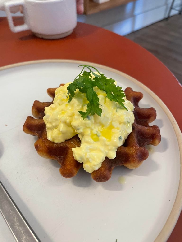 למחרת יצאנו לחרוש את העיר ברגל. יש משהו נחמד ממש בלחזור לעיר שכבר היית בה. לא צריך לסמן וי על שום דבר ואפשר פשוט להסתובב ברחובות באיזי, ולהיזכר הי פה היינו, פה אכלנו, פה קנינו וכו'. אז בגדול זה מה שעשינו. התחלנו בארוחת בוקר במקום שנקרא Apotek57. גם זה מקום שיש עליו מלא המלצות, אז למרות שהוא בדיוק בצד השני של העיר – הפעם לכיוון צפון – החלטנו לצעוד לשם, ואז לשוטט כל הדרך חזרה. מזג האוויר היה מעולה, 22 מעלות, שמש זורחת ואף ענן בשמיים. אפילו הצטערתי שלא לבשתי מכנסיים קצרים. אחרי חצי שעה הליכה, רובה לאורך התעלה, הגענו למסעדה. את התור ראו כבר מקצה הרחוב. בחיי, תיירים זה עם משונה, נעים כעדר מהמלצה להמלצה (סתם, היו שם גם לא מעט מקומיים). המקום קטן וביתי כזה (בין לקוח ללקוח הקופאית שוטפת את הכלים שהצטברו בכיור מאחוריה), האוכל טעים ממש, אבל גם פה מאוד יקר. אכלנו וופל בלגי מטוגן כזה עם סלט ביצים שעלה 80 שקל! השוס היה קרואסון עם מילוי של קרמל מיסו – שהיה שווה את ההליכה.
