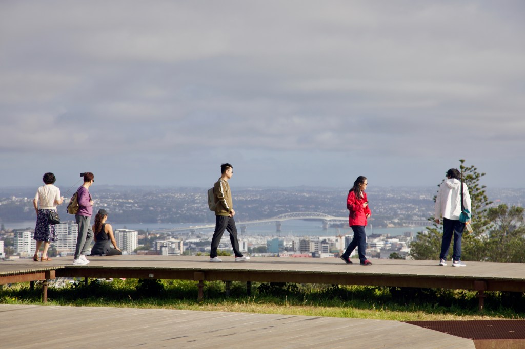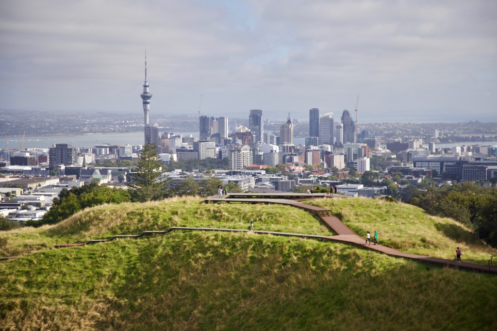 התחנה הראשונה שלנו באוקלנד היא Mount Eden, שנחשב לאחת מנקודות התצפית הטובות על העיר. זה הר געש עתיק ורדום שנמצא די באמצע העיר, כך שיש ממנו תצפית יפה של 360 מעלות. אפשר להגיע באוטו כמעט עת הפסגה, ואז הולכים כחצי שעה בשביל מעגלי, שמקיף את המכתש הגעשי (הרדום!). אפשר גם לעלות ברגל, אבל אנחנו שומרים כוחות להמשך… היה ממש יפה שם. מלמעלה רואים שאוקלנד שטוחה ברובה, מוקפת מים וטובלת בירוק.