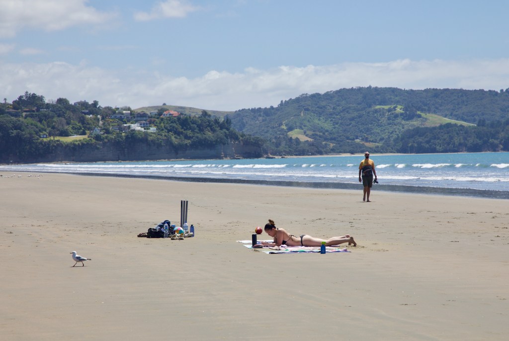 העצירה הבאה הייתה, גם זה בהמלצתו של אבי, ב-Orewa – עוד עיירת חוף חמודה, עם קו מים יפהפה, חוף חולי ענק (בדיוק היה שפל) ורחוב של מסעדות שכולם הולכים לאורכו. צילמנו קצת, אכלנו ארוחת צהריים, והמשכנו.
