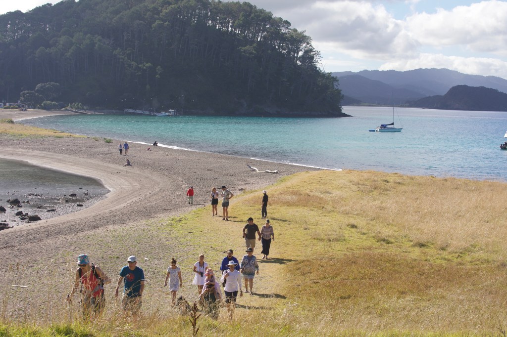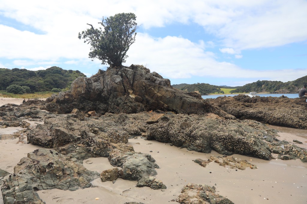 בעצירה הבאה, שהייתה כבר בדרך חזרה, עצרנו בחוף חולי באחד האיים, והצוות חילק ציוד שנירקול. כמובן שהייתי חייבת לנסות, וכמובן שאלון ויתר. היה קר בהתחלה אבל כשמתרגלים זה בסדר. גם היה חם בחוץ אז לא היה נורא לצאת מהמים. מתחת למים רואים הרבה דגים, אבל מסוג אחד – אפורים גדולים עם מעין עיגולים כחולים מסביב לעיניים. מחוץ למים דווקא ראינו גם קיפוד ים, וזה היה די מרגש. אחרי 4.5 שעות בול על השעון היינו חזרה ברציף ב-Paihia.