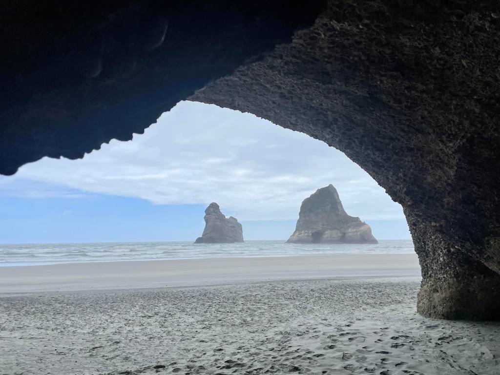 אז הגולדן ביי הוא מפרץ שנמצא ממש בשפיץ הצפוני של האי הדרומי, כלומר זו הנקודה הכי צפונית שלו (Abel Tasman נמצא טיפה יותר דרומית משם). המפרץ עצמו לא מלהיב במיוחד (אם כי הסטנדרטים שלנו פה גבוהים מהרגיל. בכל טיול אחר זה היה להיט) אבל מגוגל למדתי שלא רחוק משם נמצא Wharariki Beach, וזה כבר סיפור אחר לגמרי. החוף הזה מפורסם בגלל שגם בו צילמו שומר מסך של מיקורסופט (אמרתי לכם שכל תמונה פה היא שומר מסך פוטנציאלי, אז יש גם כאלה שהפכו לשומרי מסך במציאות), וכשקראתי שאפשר לראות שם גם גורי כלבי ים חופשיים, זה די הכריע את השאלה מה עושים מחר.
