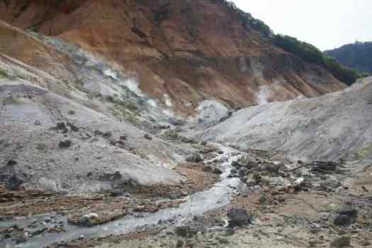 אדים עולים בכל מקום. עמק הגיהנום NoboribetsuJigokudani